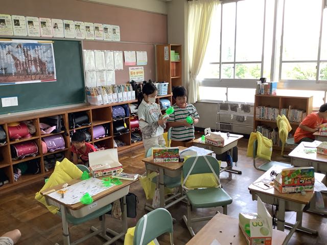4年生は、理科の学習で電池で動く車や扇風機を作りました。とても楽しそうに作製していました。