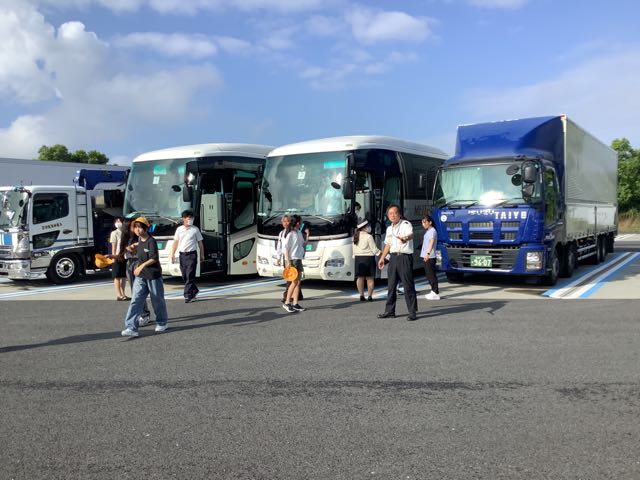 バスは23号線の渋滞を切り抜け、三重県入りしました。湾岸長島パーキングエリアにて、ひと休みです。ちょっぴり眠いですが、みんな元気です。