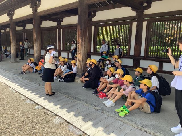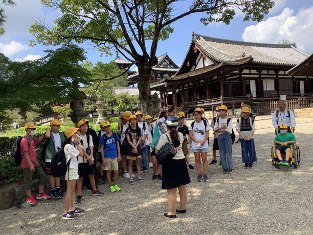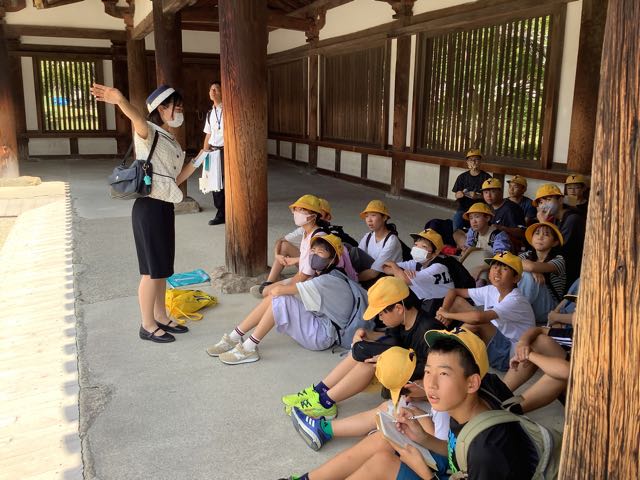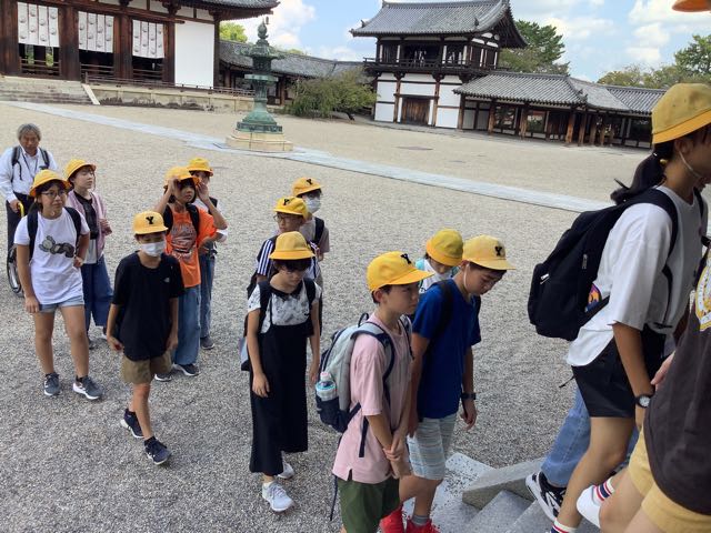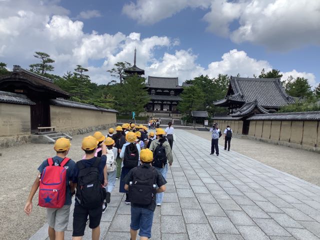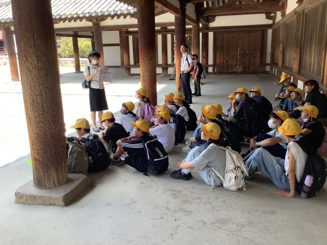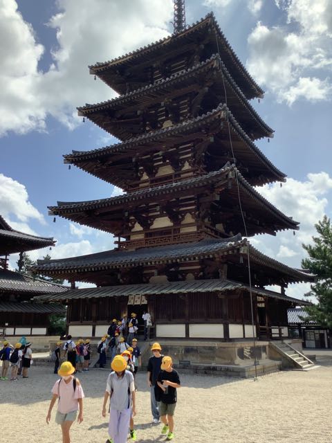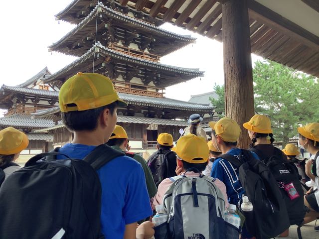 法隆寺南大門、中門、五重塔、金堂、大宝蔵院を順番に見学しました。ガイドさんの話をよく聞いて、自分の目で本物を確かめることができました、
