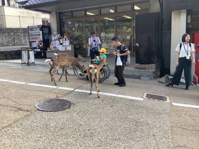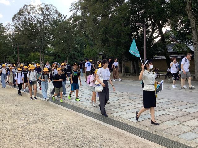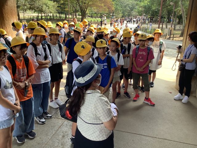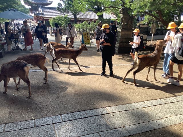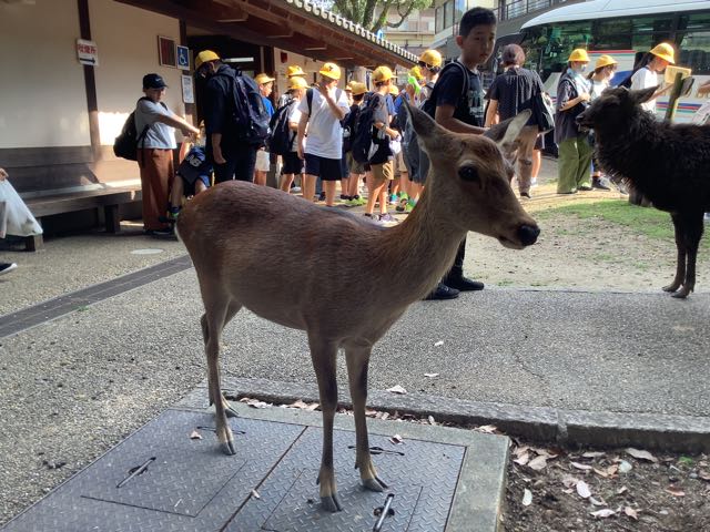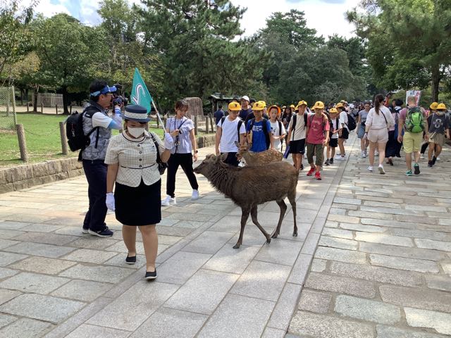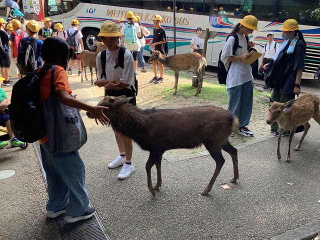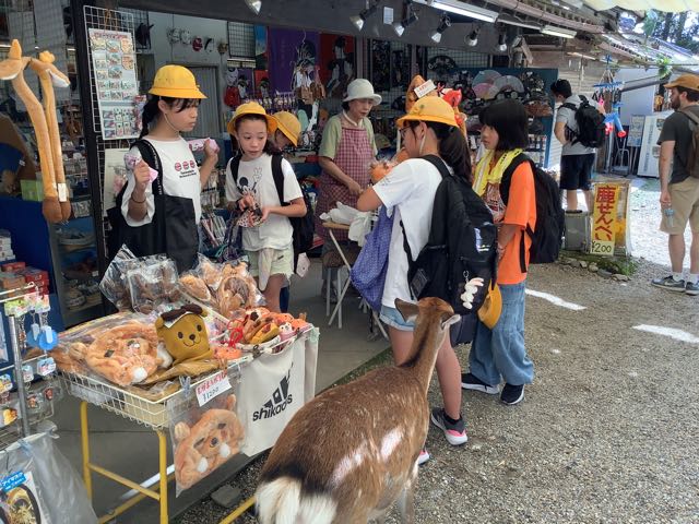 公園内はグループ行動です。途中でお土産を買ったり、鹿にせんべいをあげたりと楽しみました。