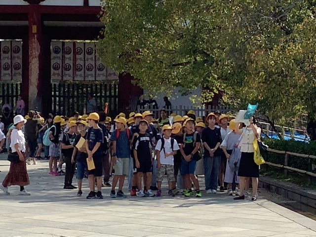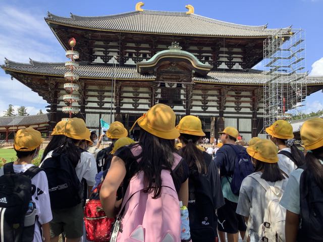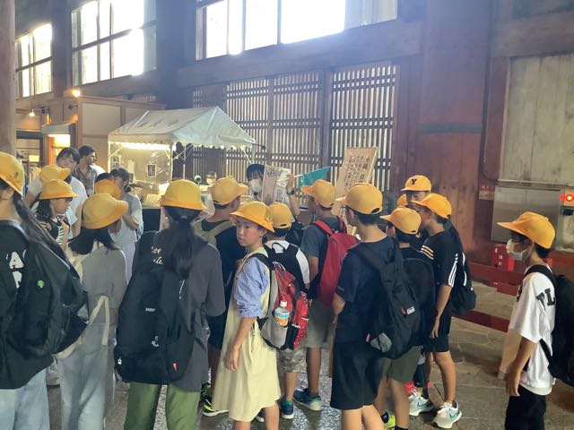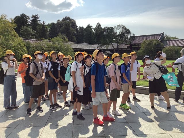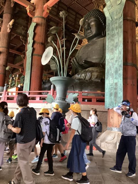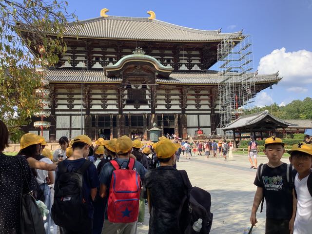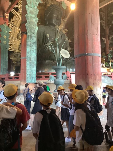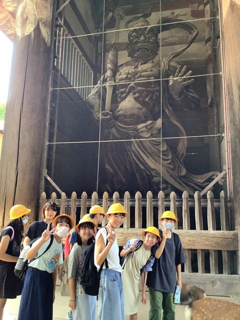 まずは、南大門。金剛力士像の力強さに感動しました。そして、大きな大きな大仏殿。約15mある大仏様を見上げて「おお、でかい」という声が漏れました。また、鹿ともたくさん触れ合うことができました。暑かったですが、みなさん、がんばって歩きました。
