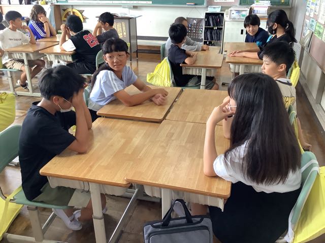 2学期になって初めての「よしよしタイム」がありました。今日のお題は「どちらを選ぶ?」です。先生の話を聞いたあと、グループで発表がスタートしました。