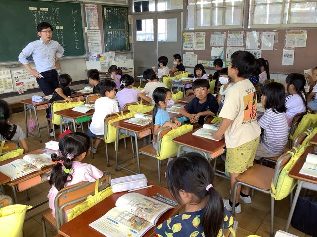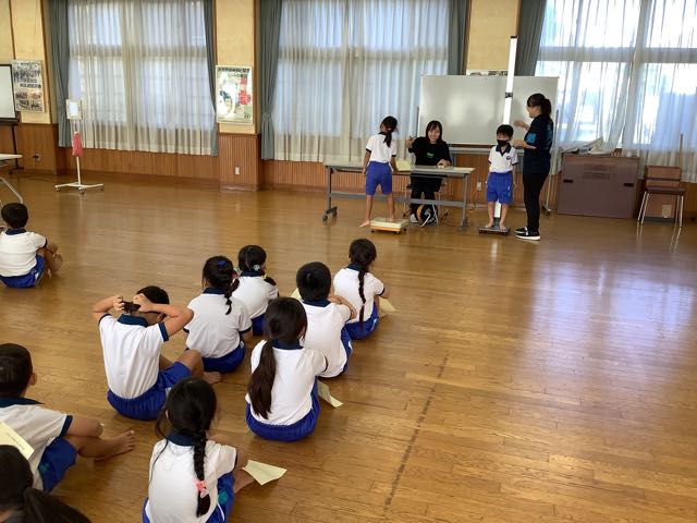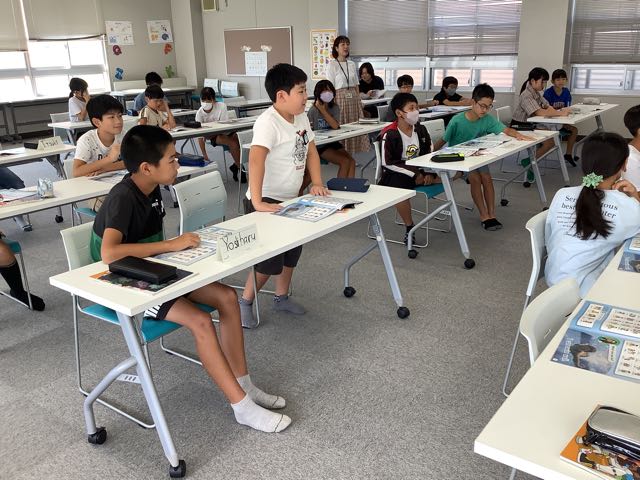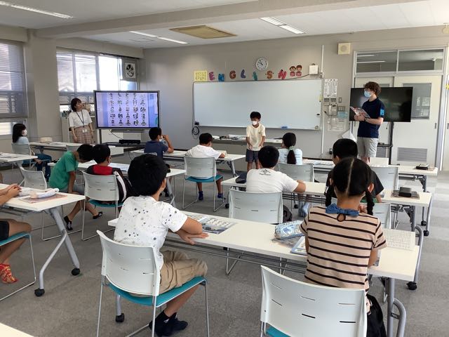 5年生は、英語の授業でジェスチャークイズをしていました。笑いがあって楽しく学んでいます。