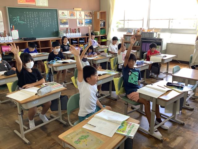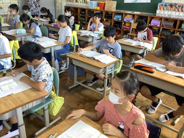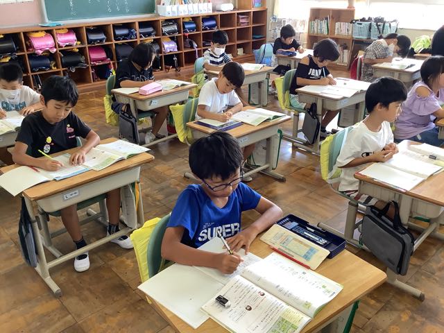 昨日から授業が始まっています。問題を考えたり、友達の意見を聞いたりしながら、授業に取り組んでいます。