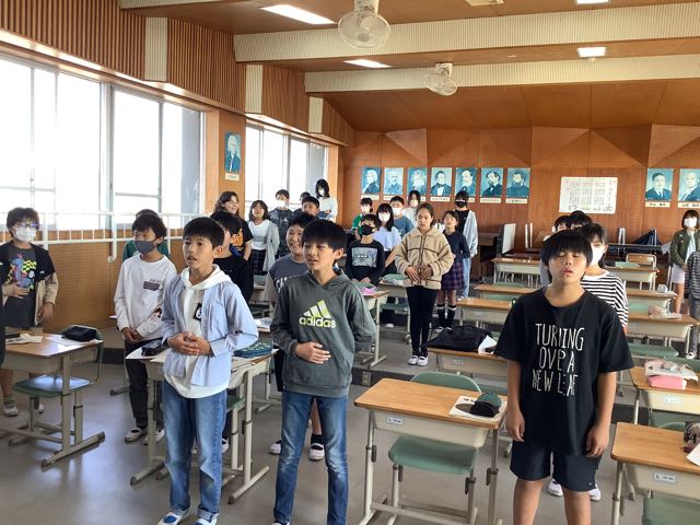 ひっひっひっひっひー♪音楽室では5年生が練習をしていました。お腹に手をあてて、腹筋を意識して歌います。高音、どこまで歌えるかチャレンジです。
