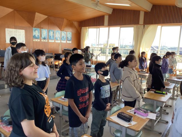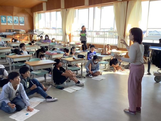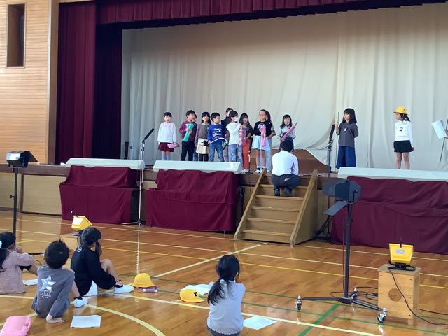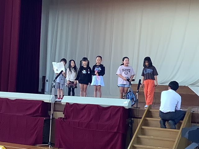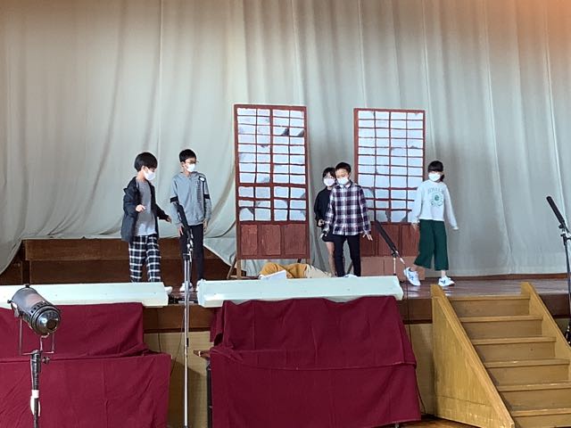 体育館では6年生が劇の練習をしていました。6年生は欠席者が複数いるため、代役を立て、みんなで助け合って進めています。