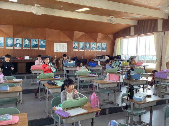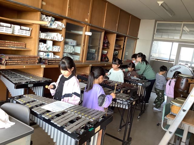 音楽室では、1年生が「きらきら星」の合奏の練習をしていました。それぞれの楽器、グループに分かれて一生懸命練習をしていました。