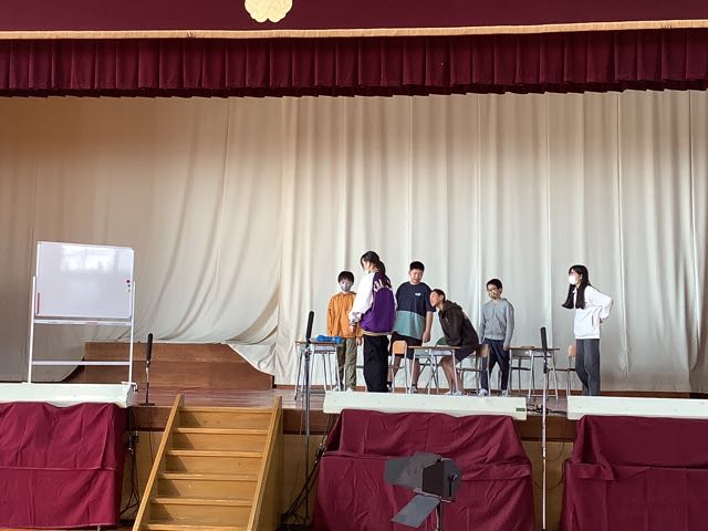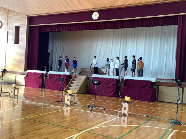 体育館では、2年生が舞台を使っての練習をしていました。