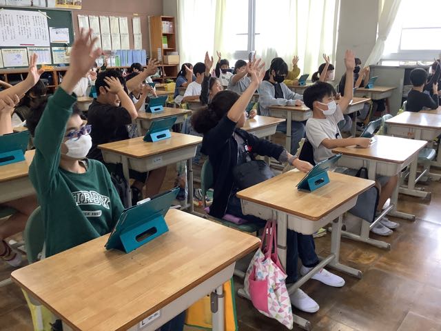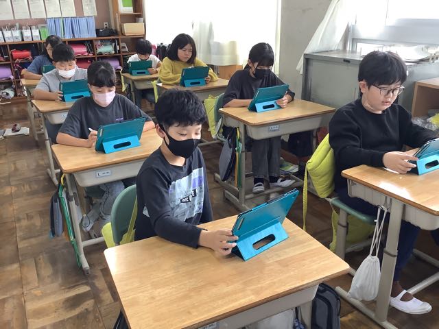 4年生と5年生が情報モラルについて、学びました。タブレットに入っている『GIGAワークブックにしお』には、タブレットを利用するうえで、気をつけていきたいことが詳しく説明されています。タブレット端末等の活用は便利ですが、使い方を間違えるとトラブルに巻き込まれてしまいます。学校でも情報モラルについて、学年に応じた内容で学んでいきますが、ぜひご家庭でも話題にしてみてください。