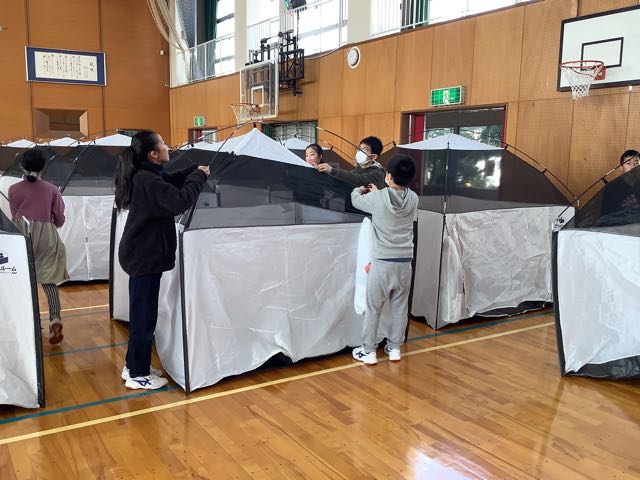 12月7日(木)6年生が1時間目から4時間目まで避難所設営訓練を行いました。