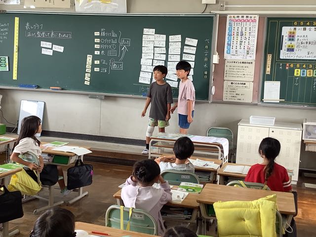 子どもたちが黒板を使ってみんなに自分の考えを伝えていました。
