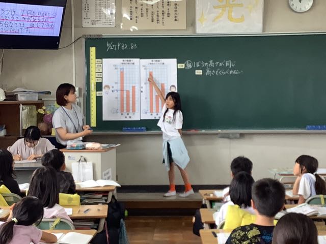 「表とグラフ」の学習で、どうやったらわかりやすく結果をまとめられるのかを話し合っていました。