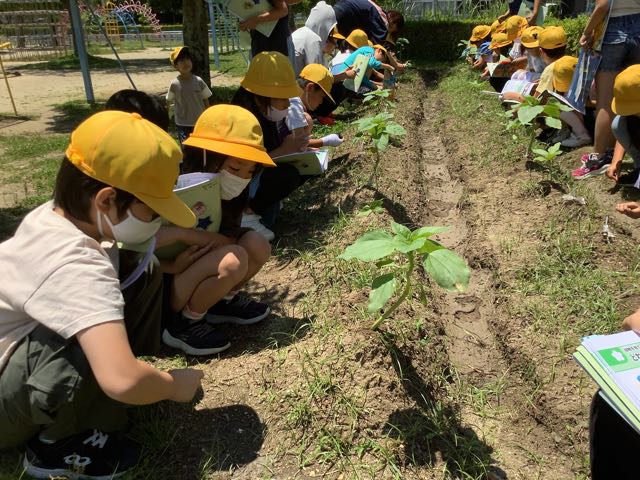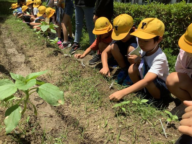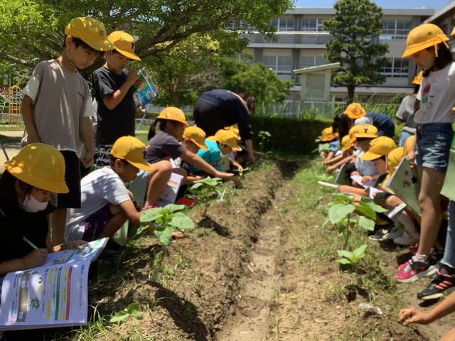 4時間目は3年生の理科の授業でした。学級園に行き、観察と記録をしていました。どんな植物を育てているのでしょか。
