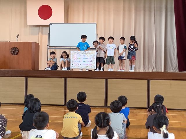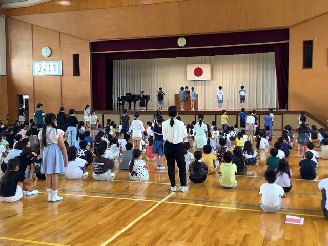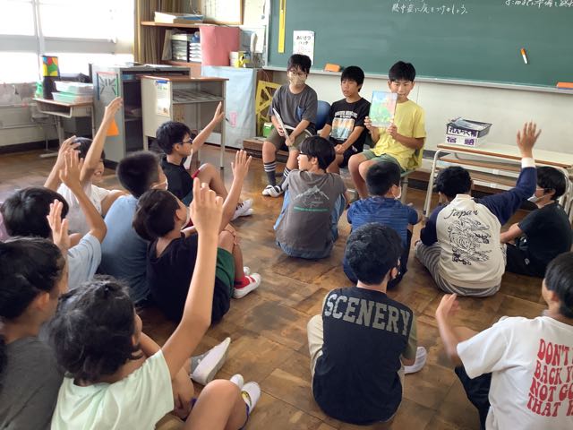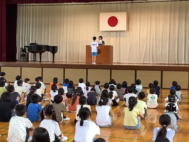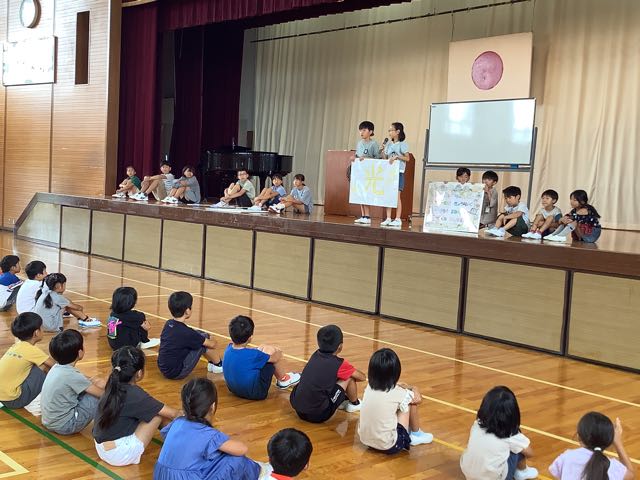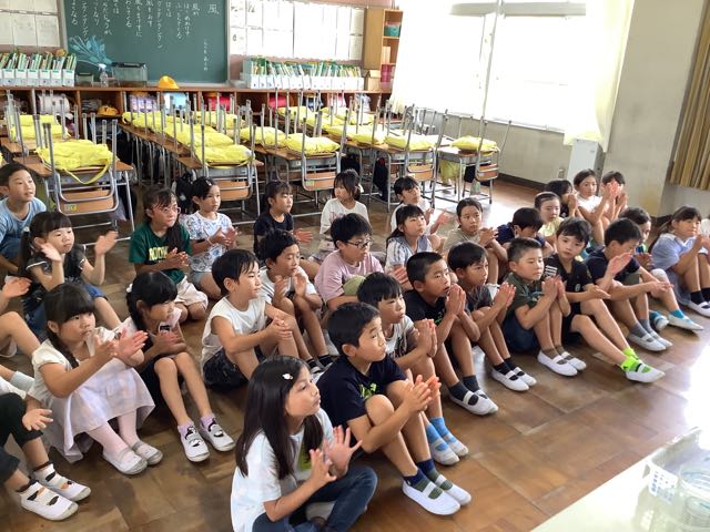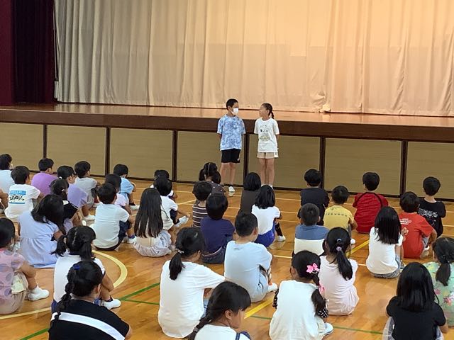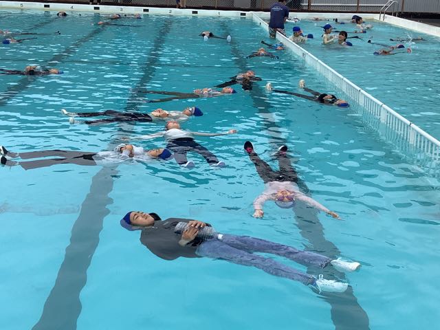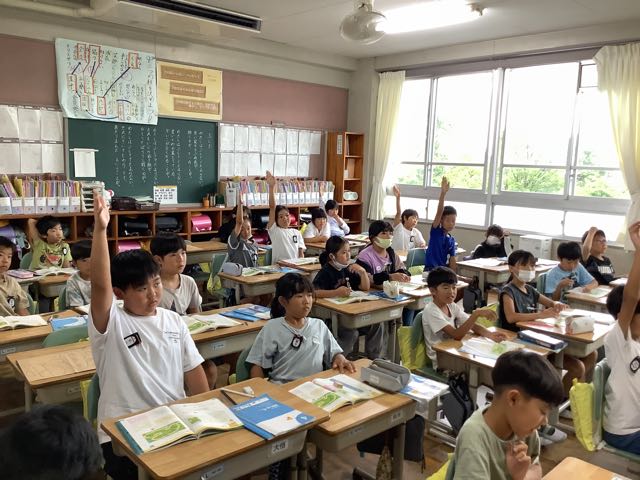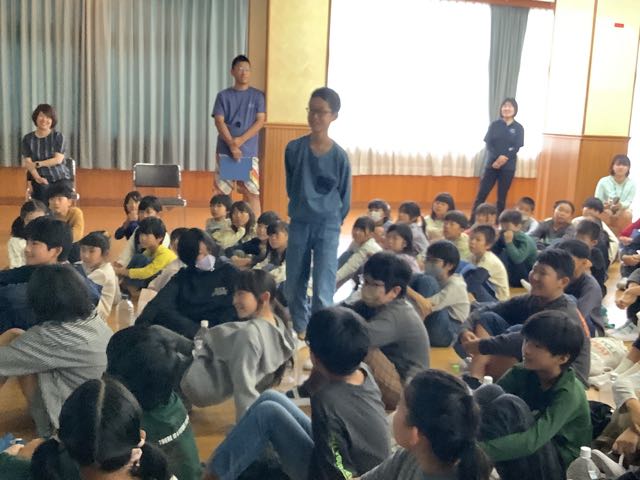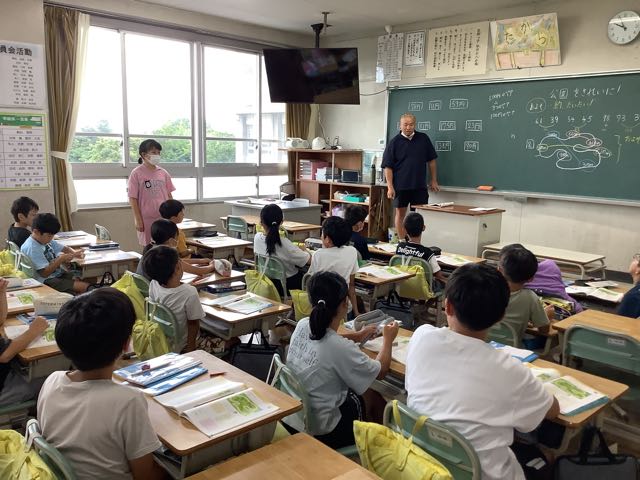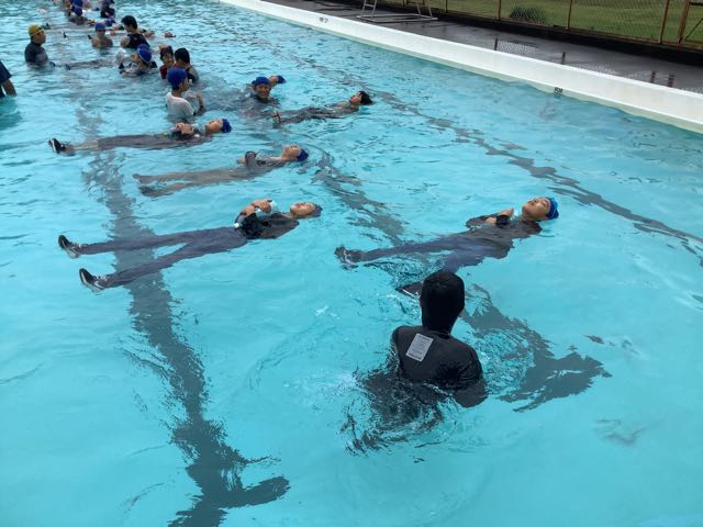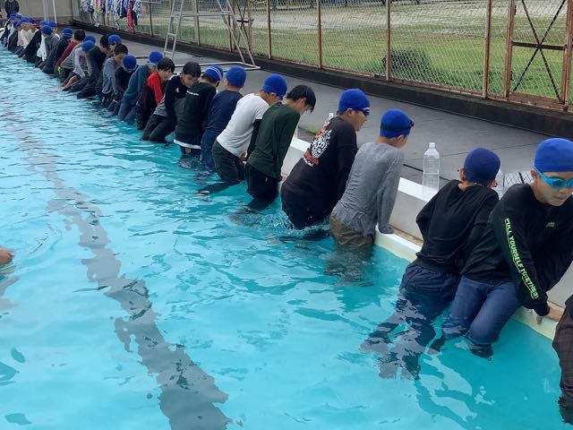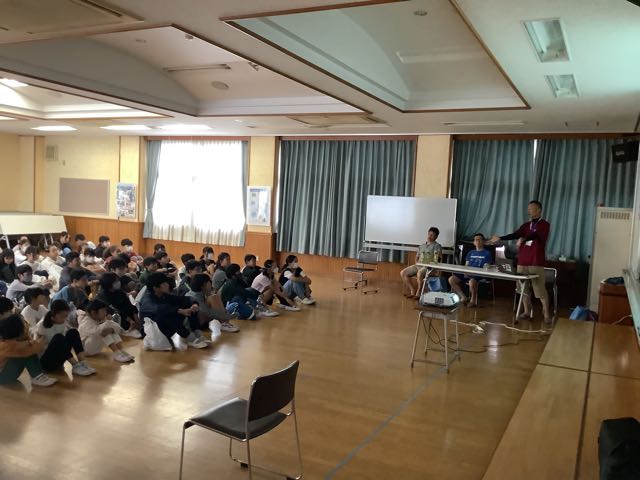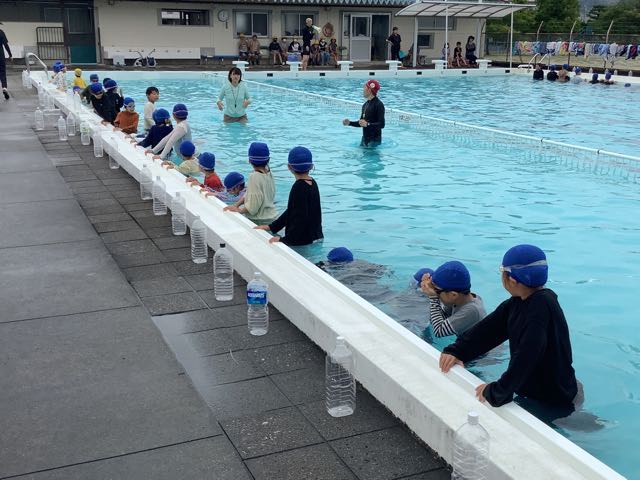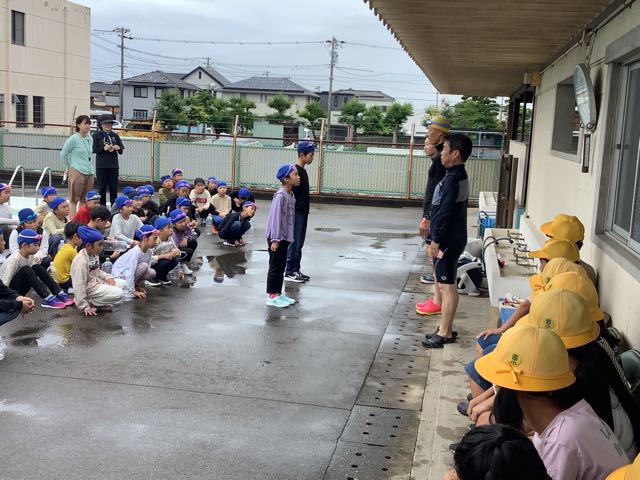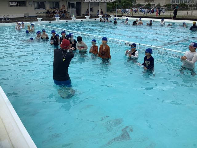 今日は、3年生、6年生が着衣泳体験を行いました。3時間目は、講師の方の講義を聞いて、万が一、水難事故に遭ってしまった際には、「浮いて待て!」が大切であることを学びました。4時間目は、実技を行いました。服を着たまま水の中に入ると、「わあ、気持ち悪い」「重たい」という声が漏れました。その後、「背浮き」に挑戦しました。ペットボトルやお菓子の袋、カップ麺を抱えて浮きました。慣れてくると何も持たずに背浮きをする子も増えてきました。最後は、3分間テストをしました。「3分は、とても長く感じました。でも、自分の命を守るために、もしもの時は、今日の体験を忘れずにできるようにしたいです。」と代表児童が感想を述べました。