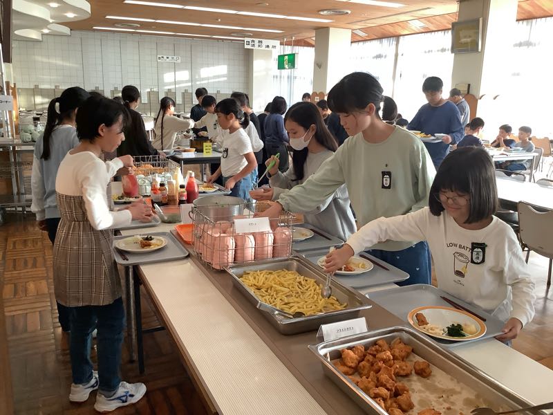 夕食はバイキング形式です。おかわりする子が多く、びっくりです。