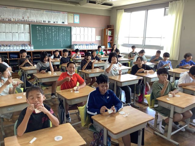 今日は今年度3回目の吉田小すいすいスイーツデーです。今日のスイーツはミルクカップです。
