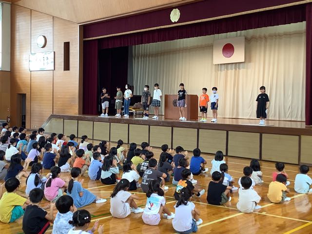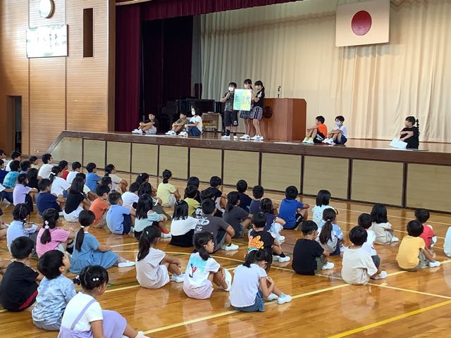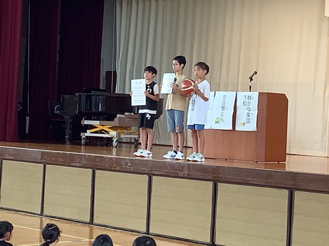 始業式では、児童会代表と学級代表が2学期の目標を堂々と発表しました。
