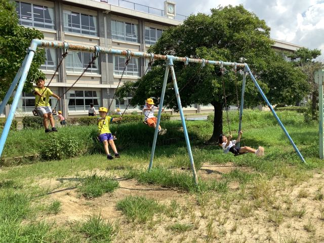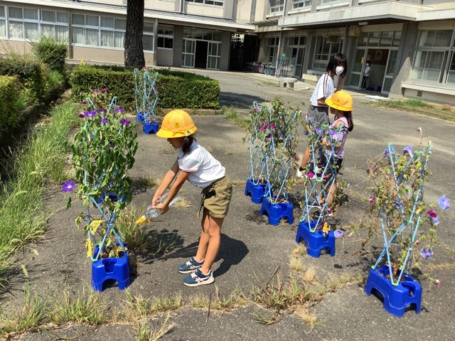 外に出て元気に遊んだり、朝顔の水やりをしたり、友達と楽しくおしゃべりしたり、図書室に本を借りに行ったりして楽しく過ごしていました。