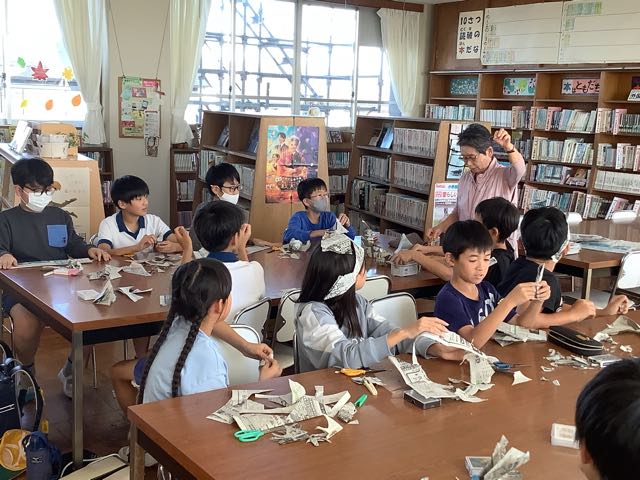 4年生が国語の授業で新聞作りに取り組んでいます。