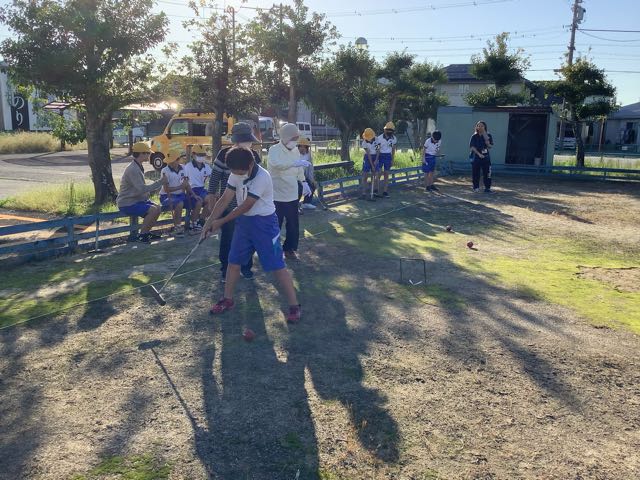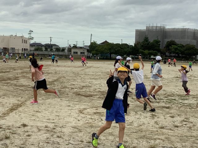 5時間目は運動場で5年生が体育の授業でした。