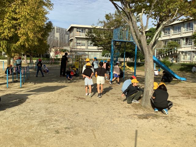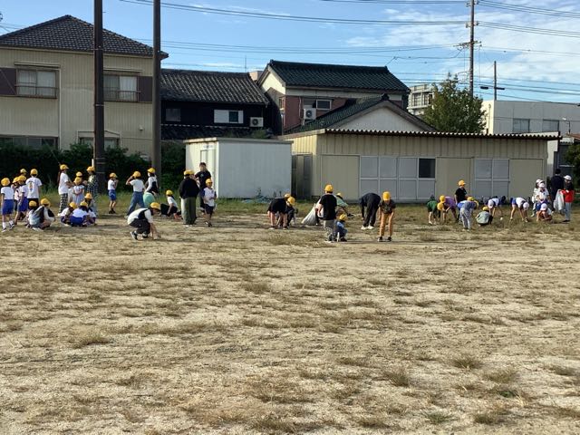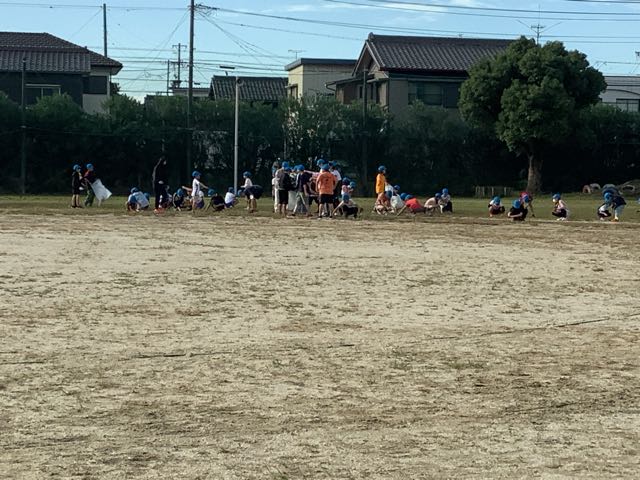 今日はさざなみ集会でした。運動委員会と環境委員会のコラボで団対抗逃草中をしました。