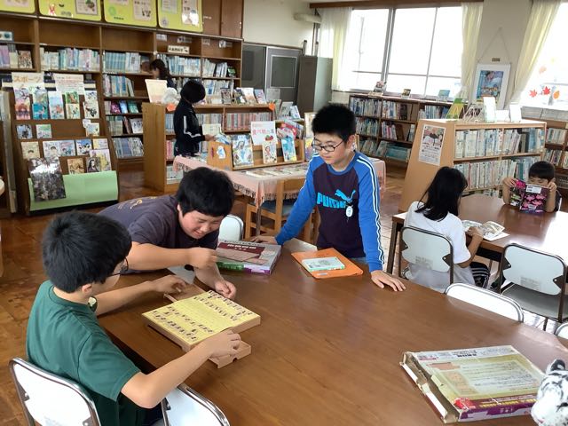 わくわくタイムは雨でした。図書室を覗くと、読書を楽しむ子、将棋を楽しむ子、図書ボランティアさんのクイズを楽しむ子がいました。