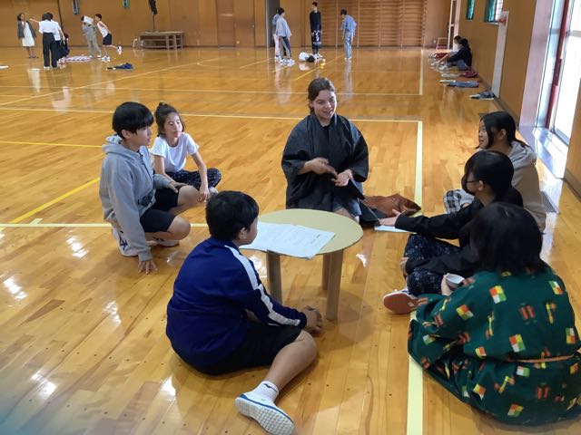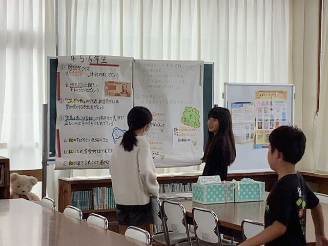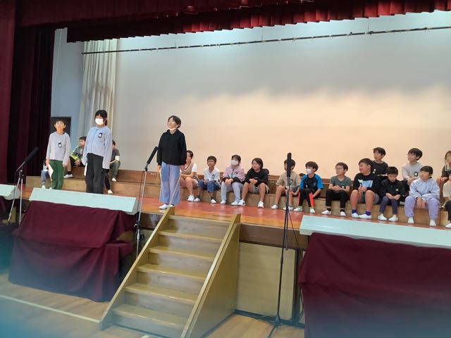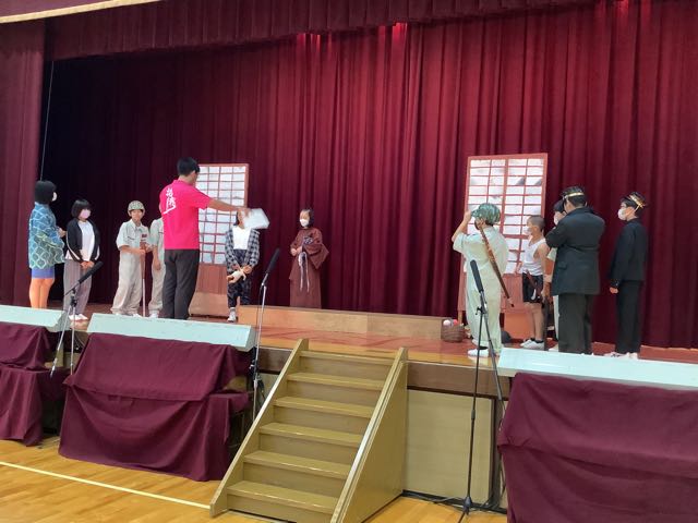 体育館では、4年生が吉Show発表会の練習を行なっていました。自分たちで話し合って決めた台詞を気持ちを込めて発表していました。