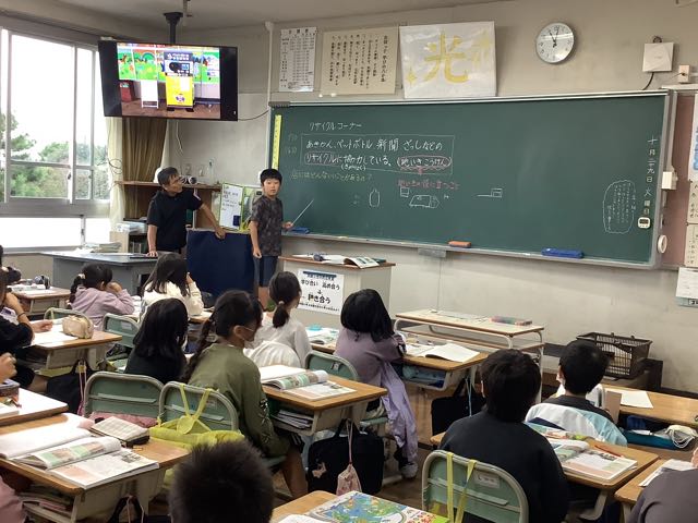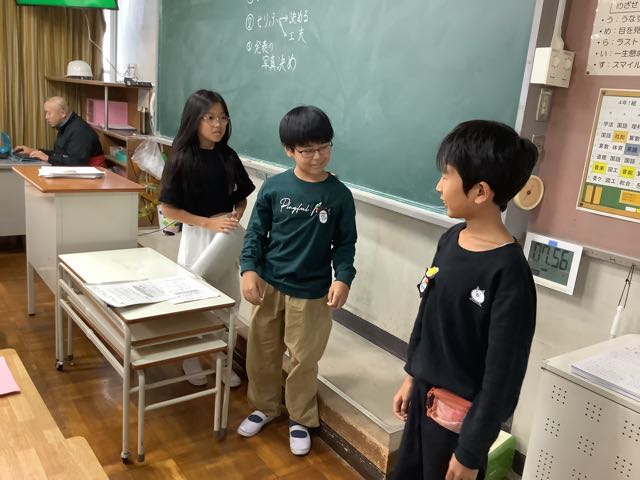 3年生は社会の授業でした。前で説明しているのは教師ではなく子どもでした。なかなかかっこいい姿でした。