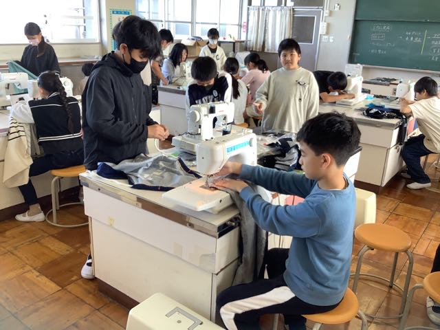 家庭科室では、5年生がミシンを使ってエプロン制作をしていました。どの子も真剣に取り組んでいました。
