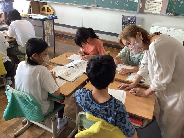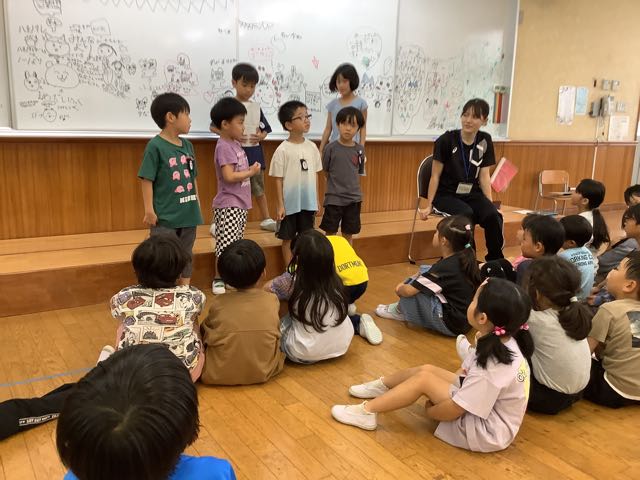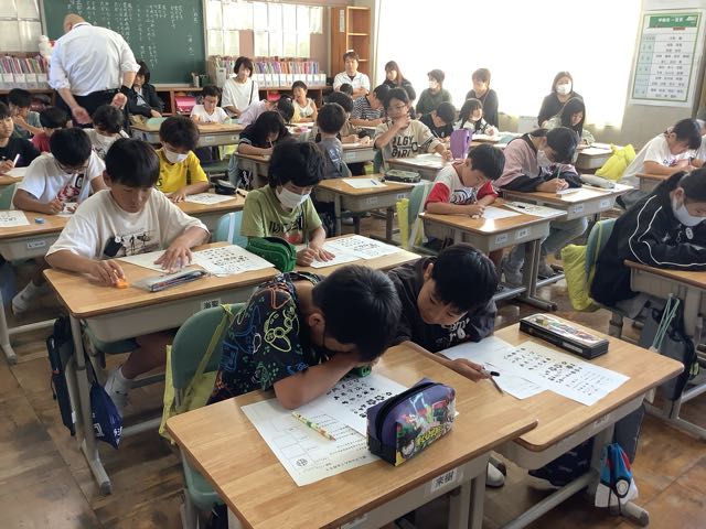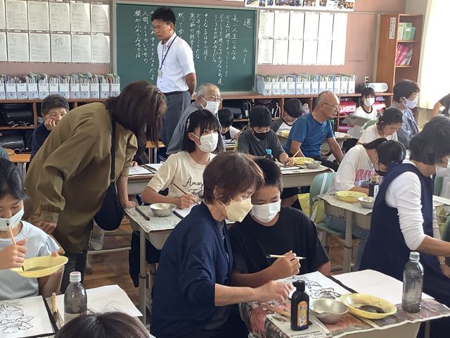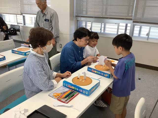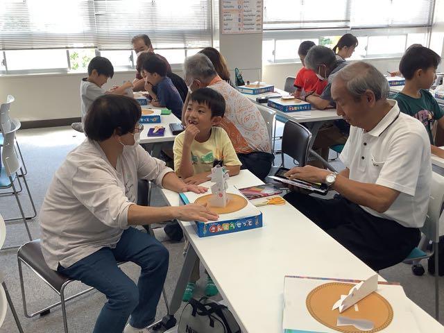 各学級で行ったのは、とんとん相撲、紙飛行機、けん玉やお手玉などの昔遊び、消しゴム判子、俳句、水墨画、アイロンビーズ、新聞紙タワーでした。