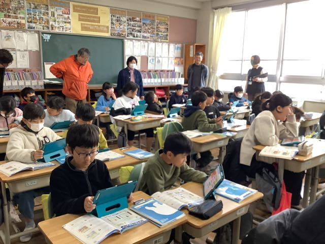 評議員さんたちは、子どもたちがタブレットを上手に活用する姿に感心されていました。