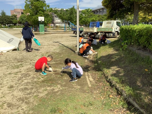 みなさんのおかげで、気持ちのよい運動場になりました。早朝より、吉田小のために活動してくださり、本当にありがとうございました。