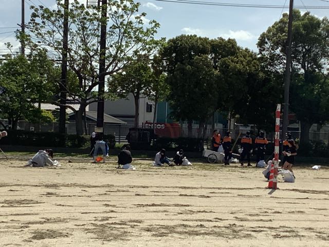 今週末は運動会です。怪我をしないように、全校練習のあと、石拾いをしました。
