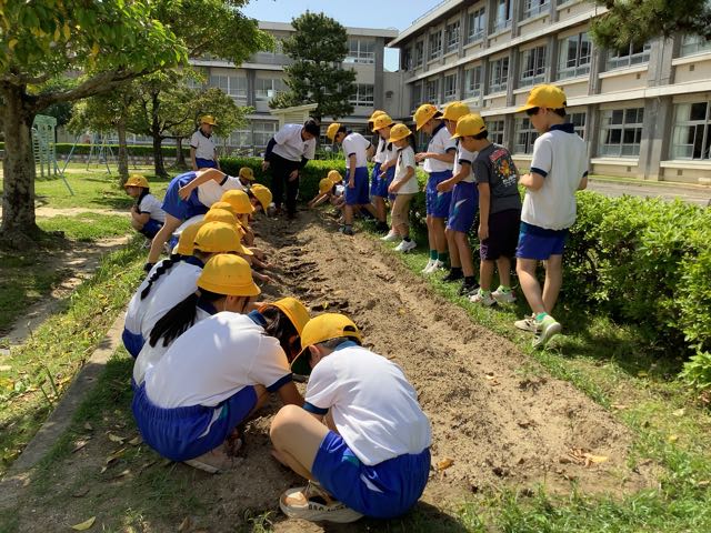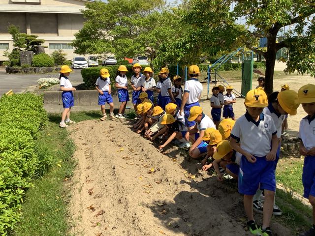 アサガオの種を蒔きました。名前をつけて可愛がっている子もいました。大きく育ちますように。