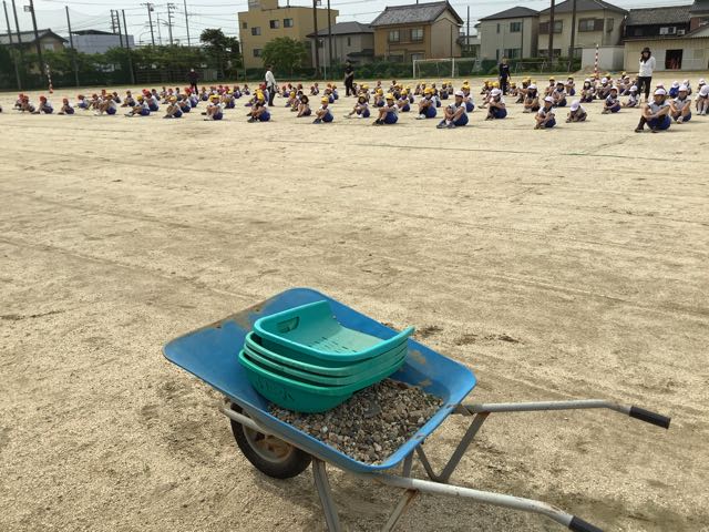今週末は運動会です。怪我をしないように、全校練習のあと、石拾いをしました。