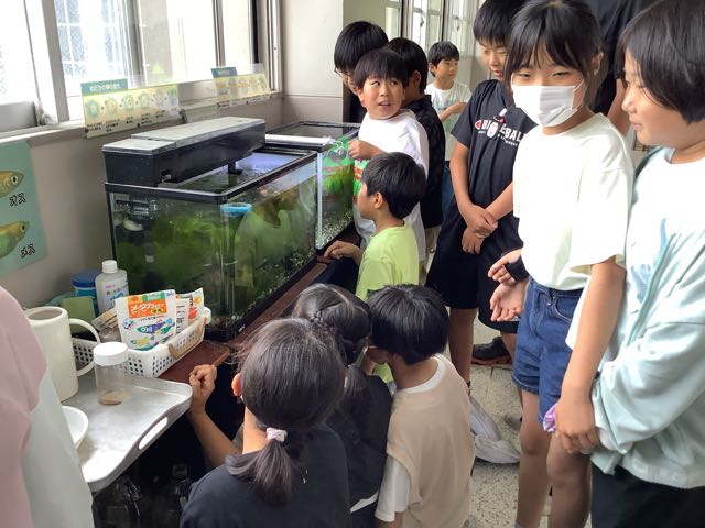 いろいろなメダカが気持ちよく泳いでいる姿を、興味津々で観察しました。また、たまごからどう変化していくのか毎日観察を続けていきます。メダカの先生、吉田っ子のためにありがとうございました。
