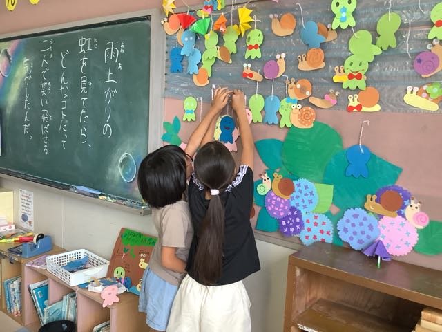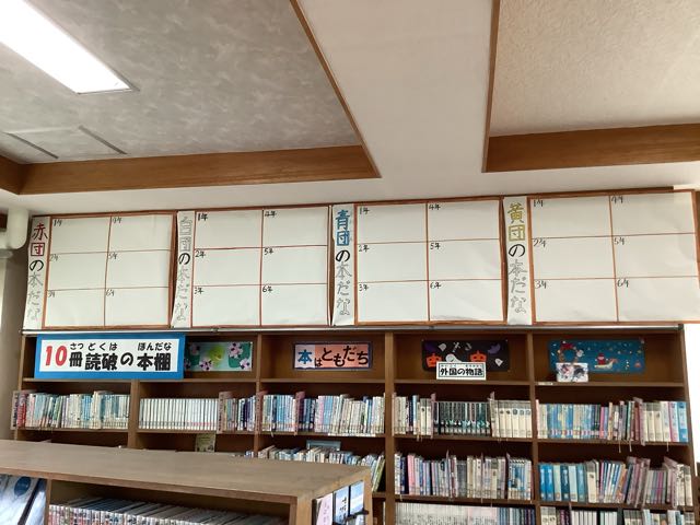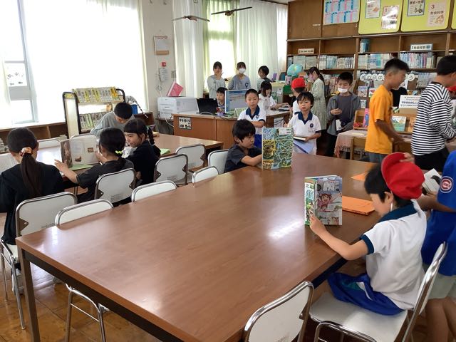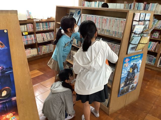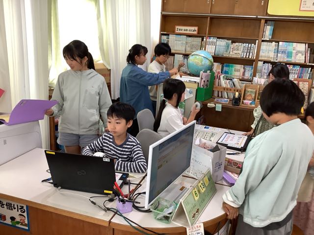 今日のなかよしタイムは、雨が降って外で遊べません。図書室に行くと、たくさんの子が本に親しんでいました。図書委員会さんもお仕事をがんばってくれていました。