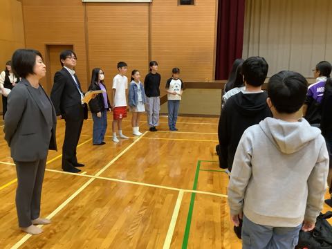 3年生の学級代表さんが、「交通安全に気をつけて過ごしていきます。亅とみなさんの前で宣言しました。