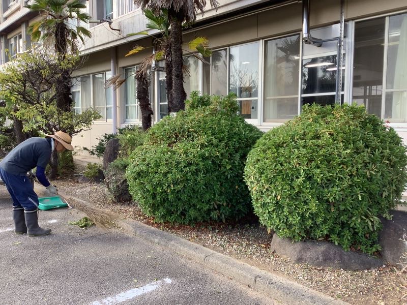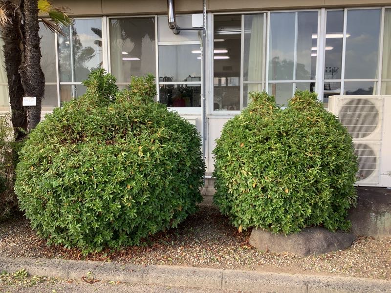 校務支援員さんが職員室の前の植木を剪定してくれていました。あれれ、耳がついていますよ…