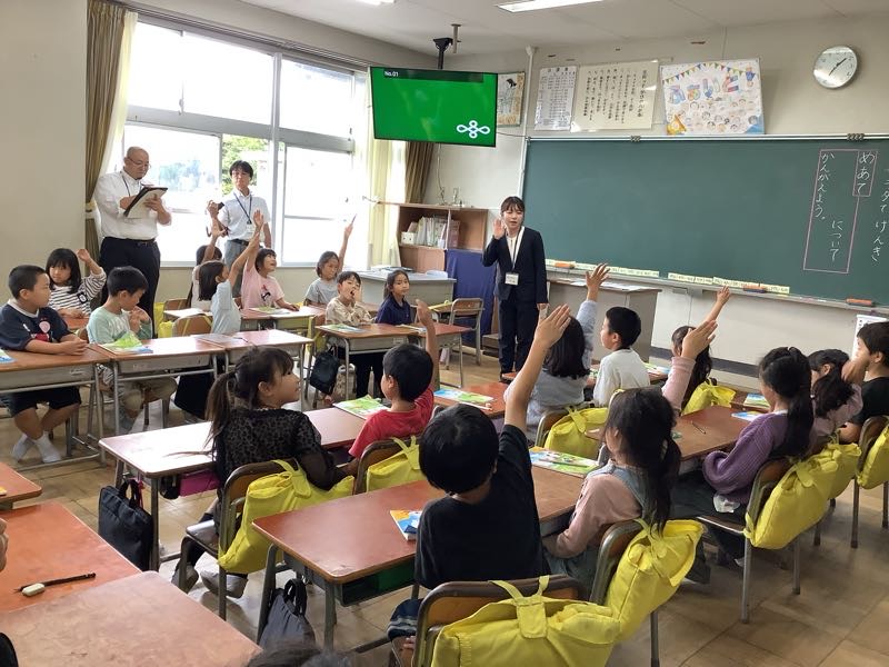 2年生が、生活科の学習で自分たちが暮らす町には、どんなお店や施設があるのか、町探検に行きました。
