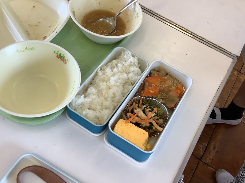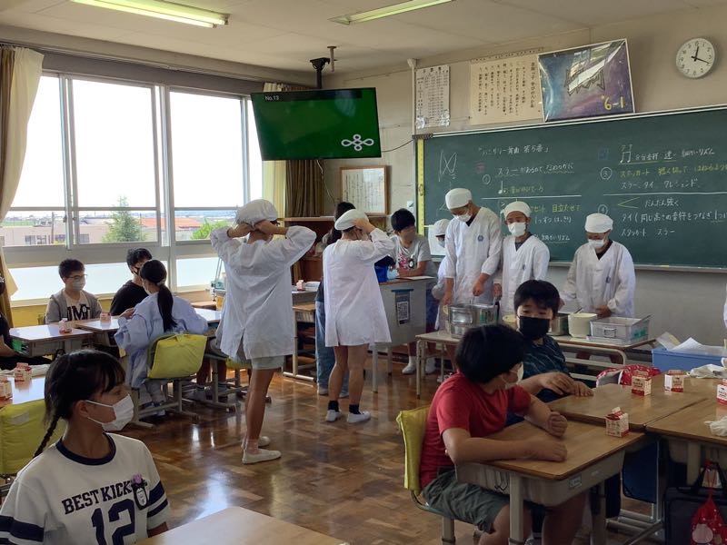 給食の配膳の仕方、手の洗い方などがしっかりできていると褒めていただきました。