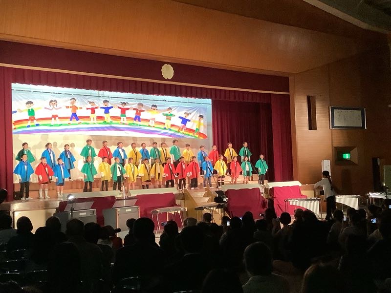 大成功した野外学習の思い出を会場のみなさまに伝えました。明るいダンス、暗闇に光るトーチトワリングで観客を魅了しました。最後の合唱は美しいハーモニーでした。