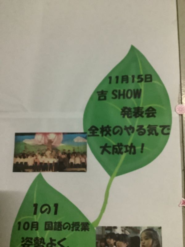 児童会会長によるおわりのことばの中に、「最高の吉Show発表会でした。」とあり、嬉しさが込み上げました。