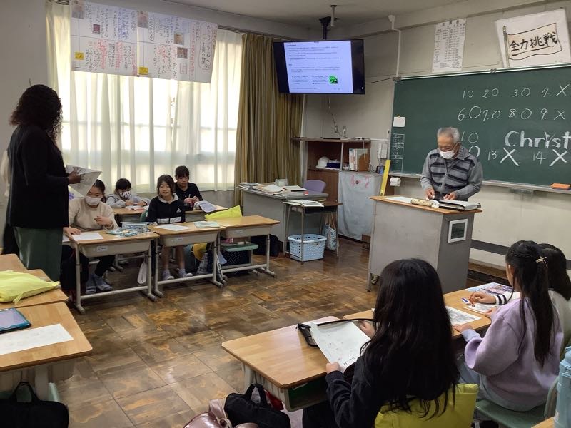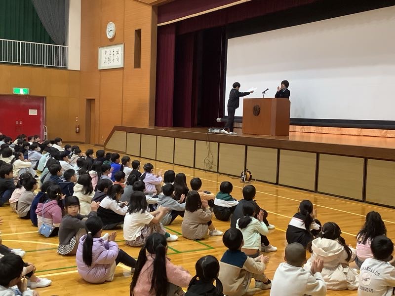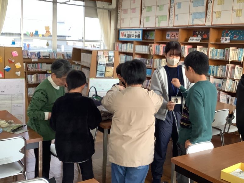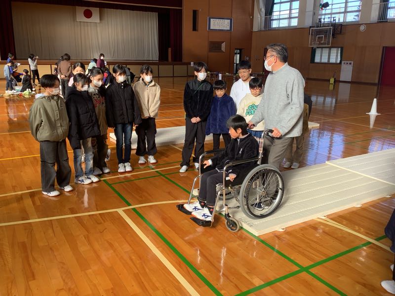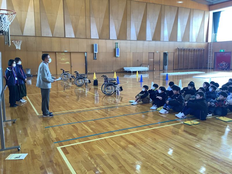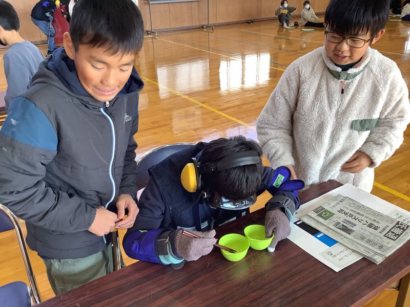 5年総合の福祉学習で、西尾市社会福祉協議会吉良支所の職員の方を講師としてお招きして福祉実践教室を実施し、2つの体験を行いました。