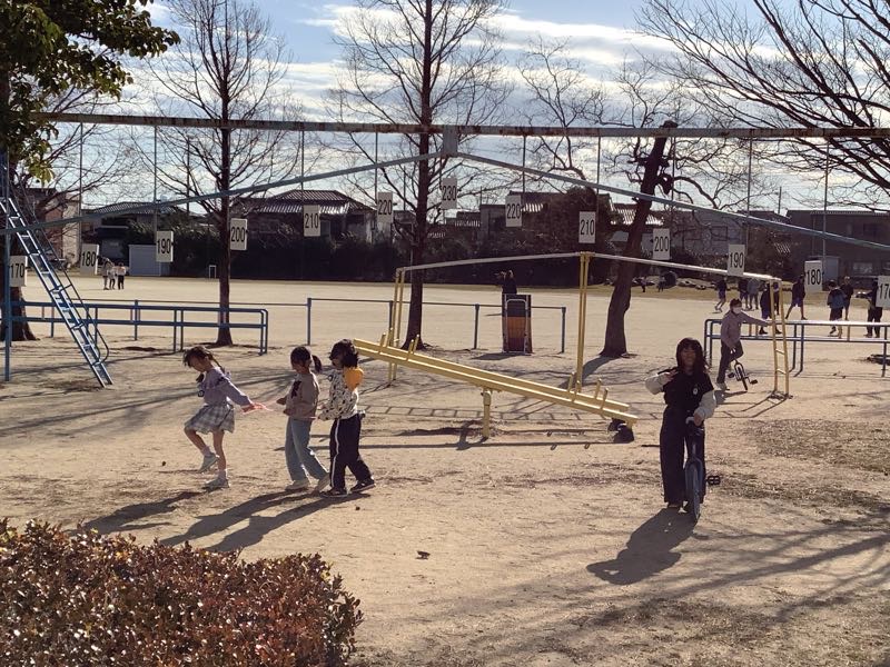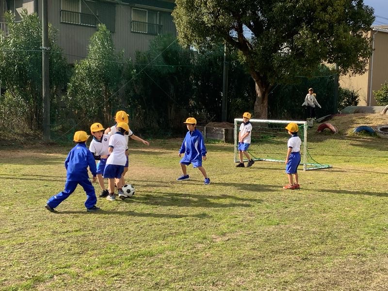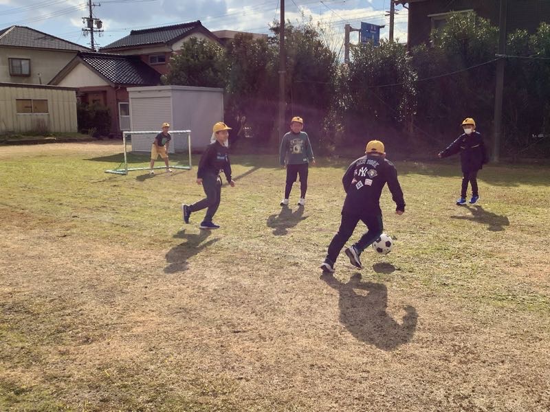 今日は冷たい風が吹いています。でも寒さに負けずなかよしタイムに運動場に出て元気に遊ぶ子どもたちがたくさんいました。新しいサッカーゴールも人気です。みんな楽しそうでした。
