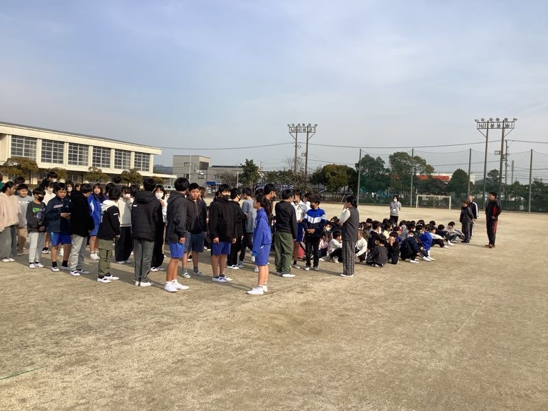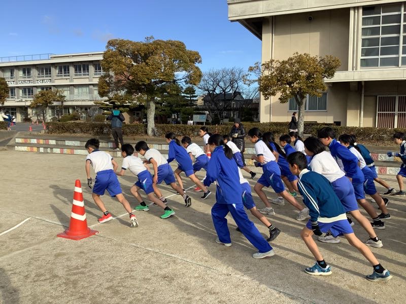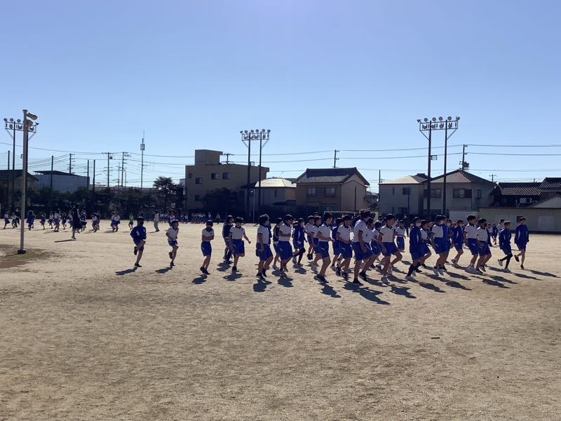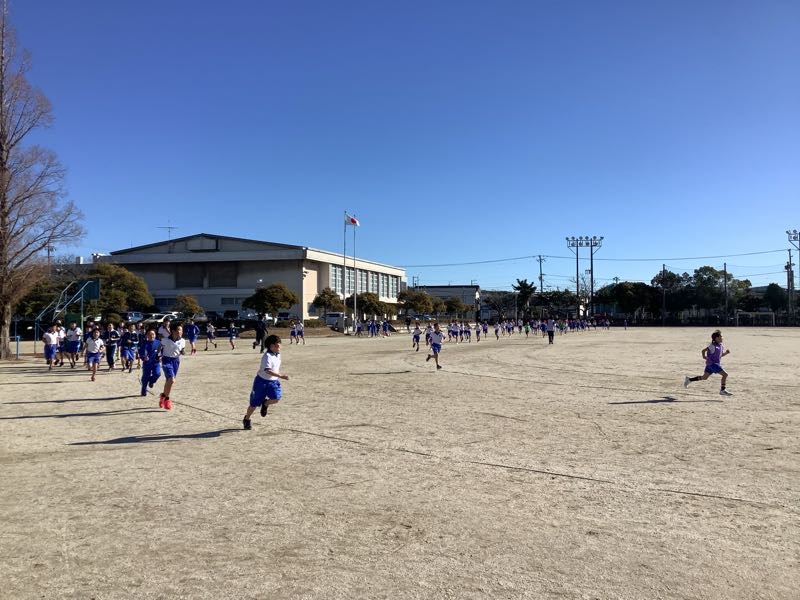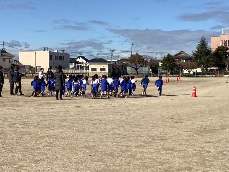 体操の後いよいよ走り始めます。運動場のトラックを軽快な曲にのって走ります。何周走る?誰について走る?など目標をもって走れるといいですね。マラソン大会は1月27日です。