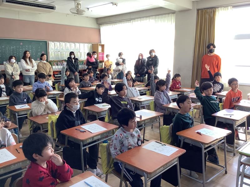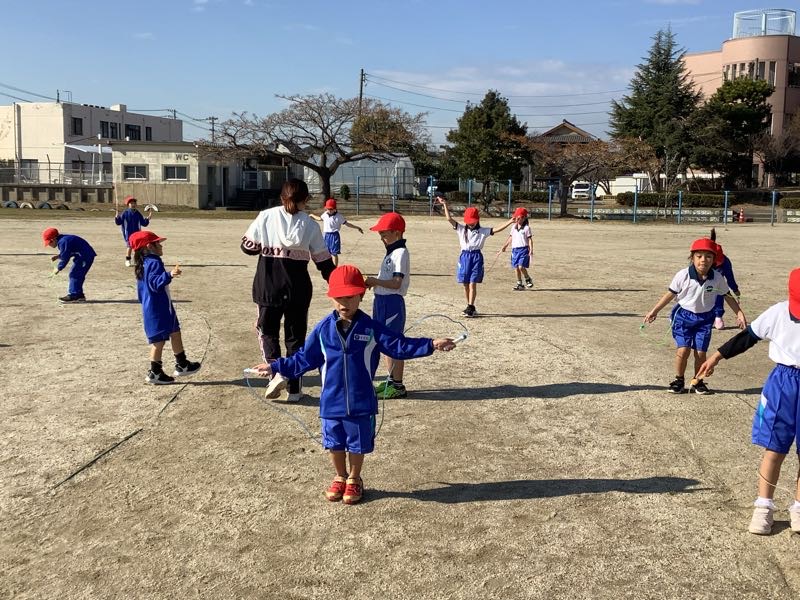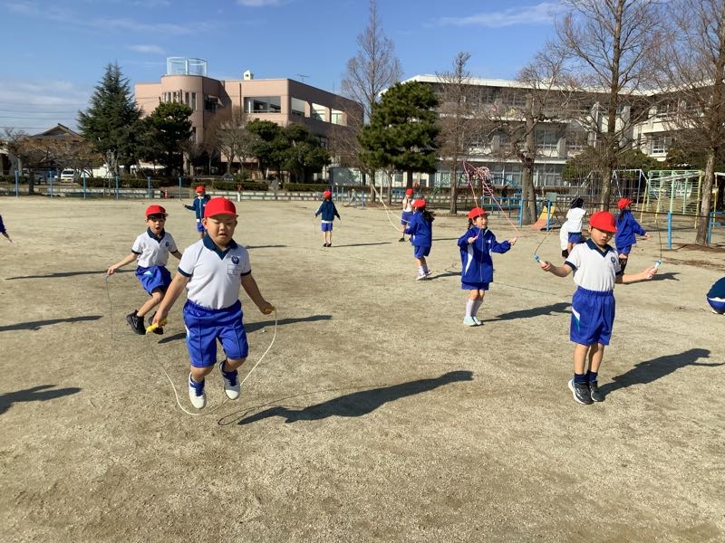 3時間目に体育の授業で縄跳びの練習をしていました。体がだんだん暑くなり、上着を脱ぐ子がちらほら。練習をこつこつ続けていくと、みんな上手になっていきます。