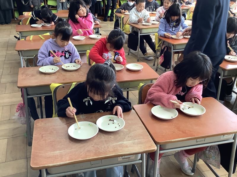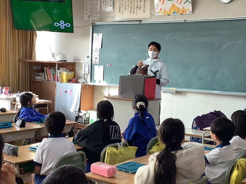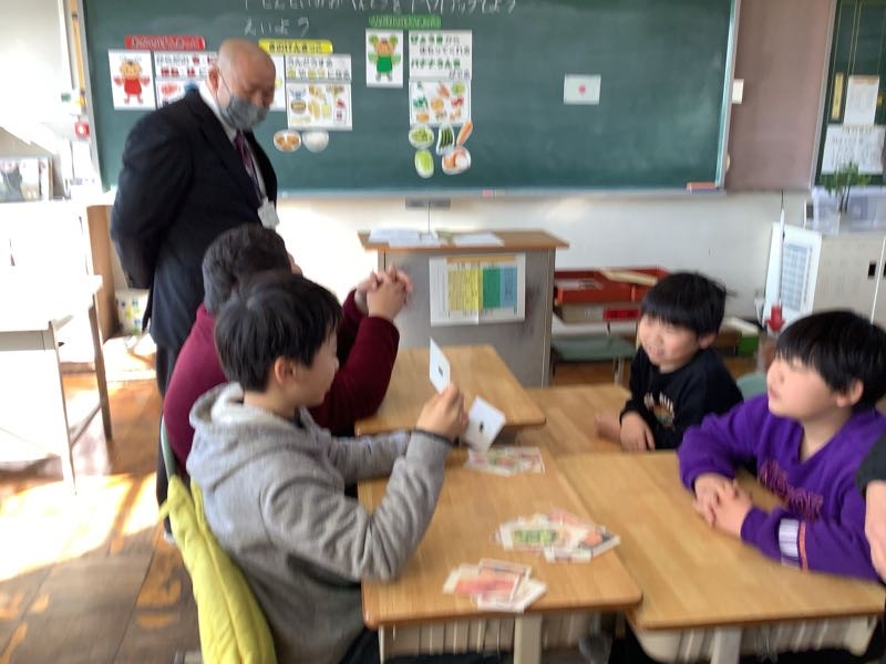 今日は食育の勉強でした。箸の使い方、野菜を食べる量、非常食、食品ロスなどの授業を公開しました。