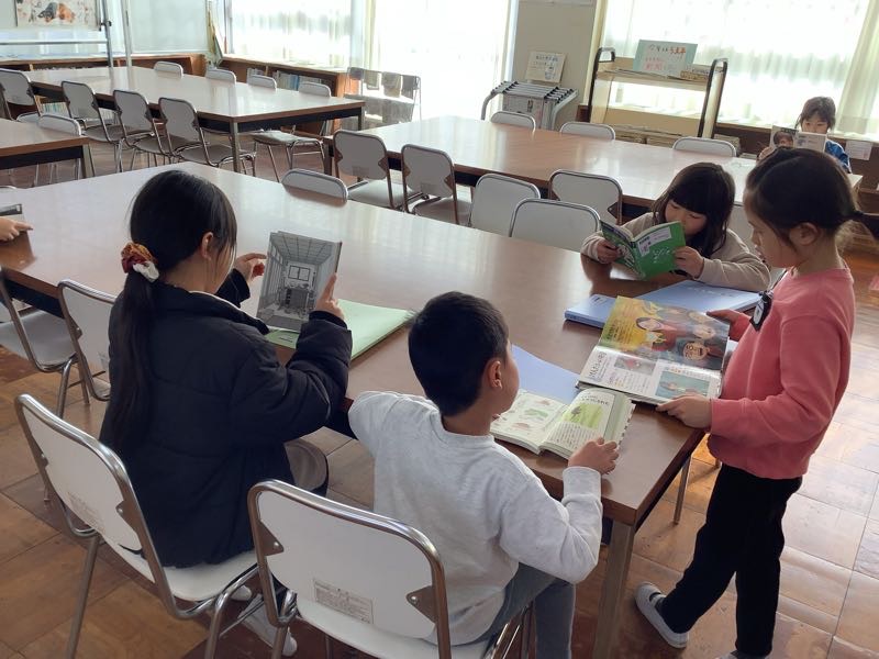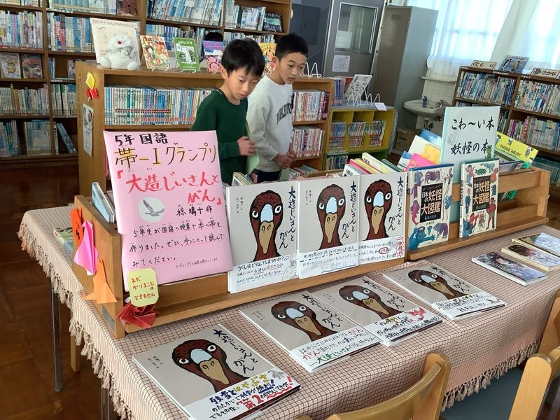 図書室では読書を楽しむ姿がありました。5年生が国語で作った本の帯が掲示されています。ぜひ手に取って読んでくださいね