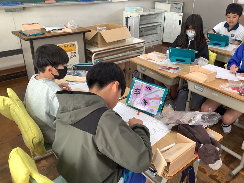 6年生は図画工作でオルゴールを制作していました。箱に小学校の思い出を彫っているようです。いろいろな行事や日々の生活で楽しかったことを思い出しながら楽しそうに作業をしていました。